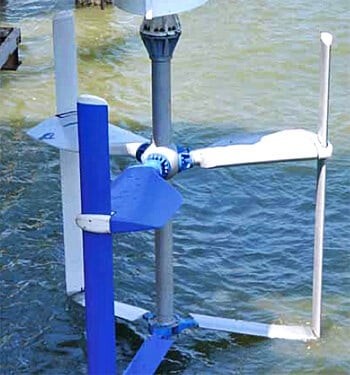 Horizontal-axis turbines are most used and look quite similar to wind turbines. Not only the look is similar, but also the working principle is comparable. This type of turbine extracts energy from moving water in the same way as wind turbines extract energy from moving air. The propellers rotate around the horizontal axis with help of the tidal stream and this results in generating power.